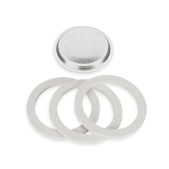 Bialetti 06601 moka express 6 cup replacement filter and 3 gaskets white.